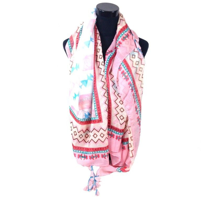 S_2373508 - LUXURY SCARF AZTEK prints with tassels PINK (1st)