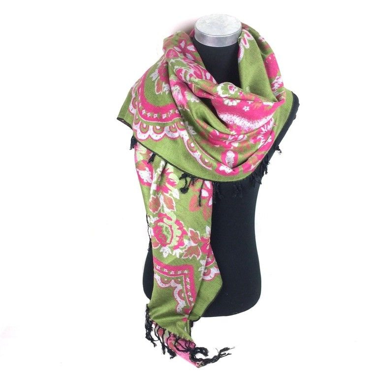 S_811155B - LUXURY GREEN SCARF WITH FLOWERS (1st)