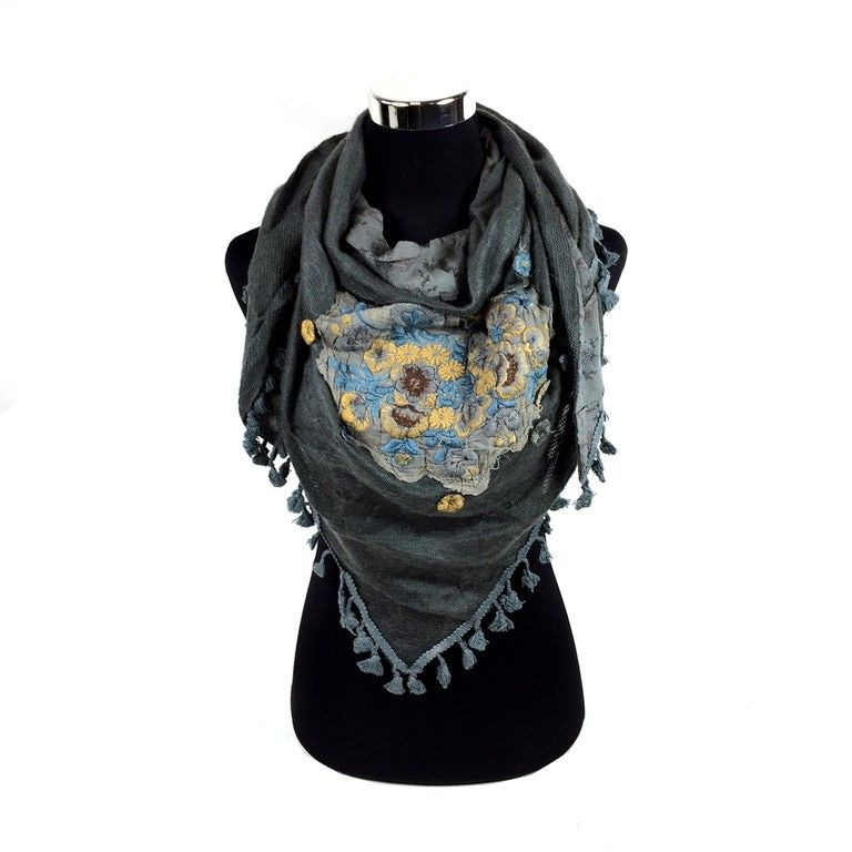 S_70015AB - TRIANGLE SCARF FLOWER GREY (1st)