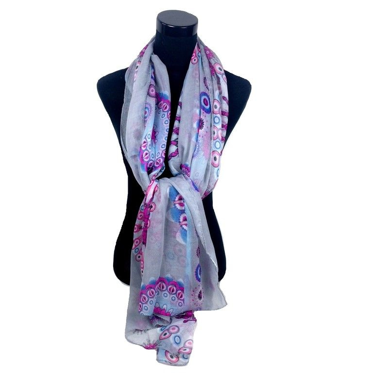 S_900003C - BEAUTIFUL SCARF WITH PRINT WOVEN GREY (1st)