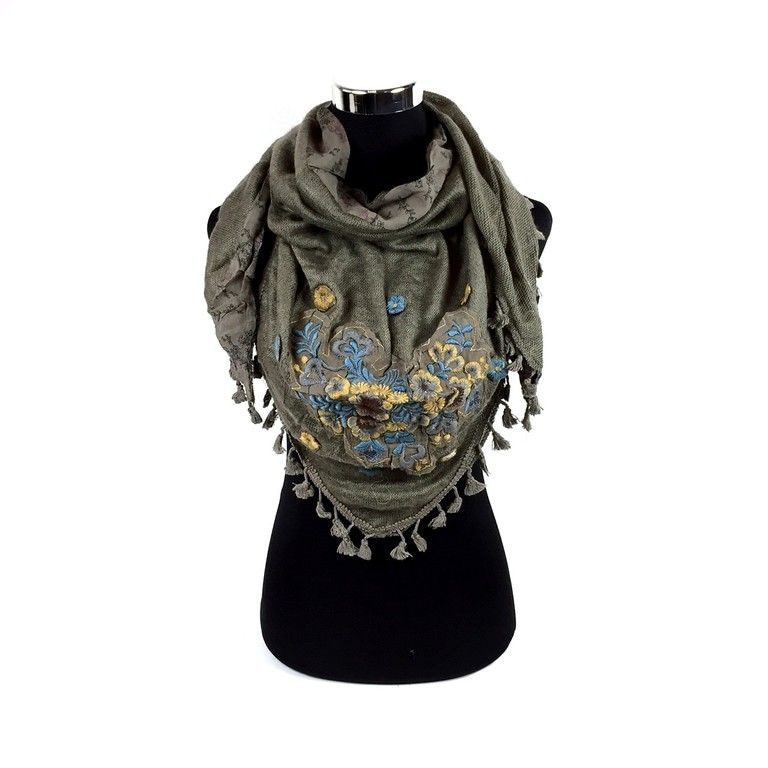 S_70015AA - TRIANGLE SCARF TAUPE FLOWER (1st)