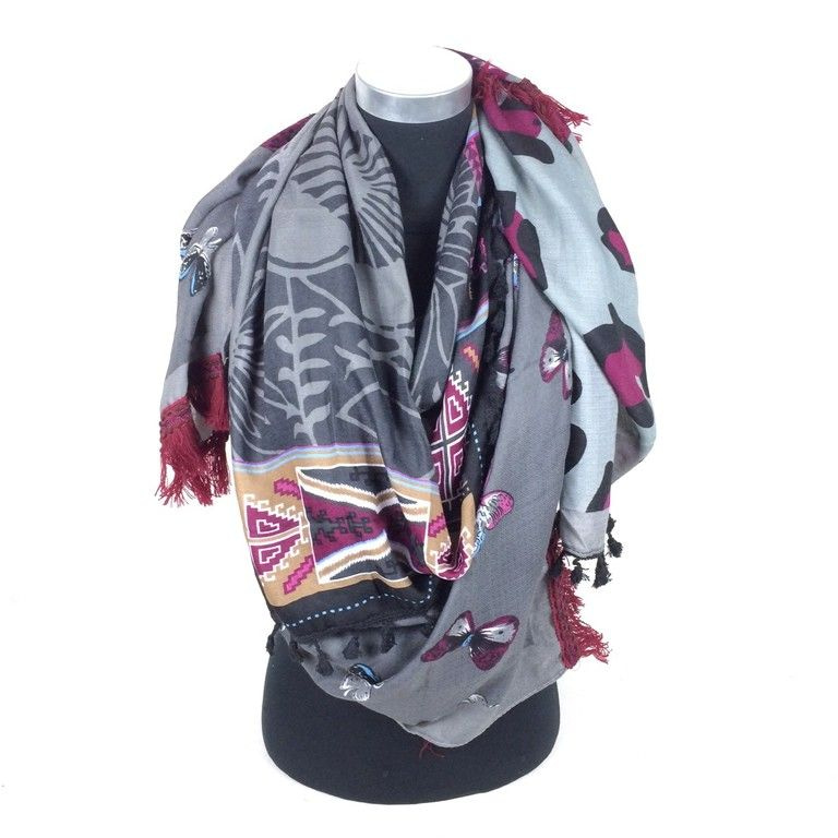 S_2264900 - LUXE SCARF GREY / RED WITH BUTTERFLIES (1st)