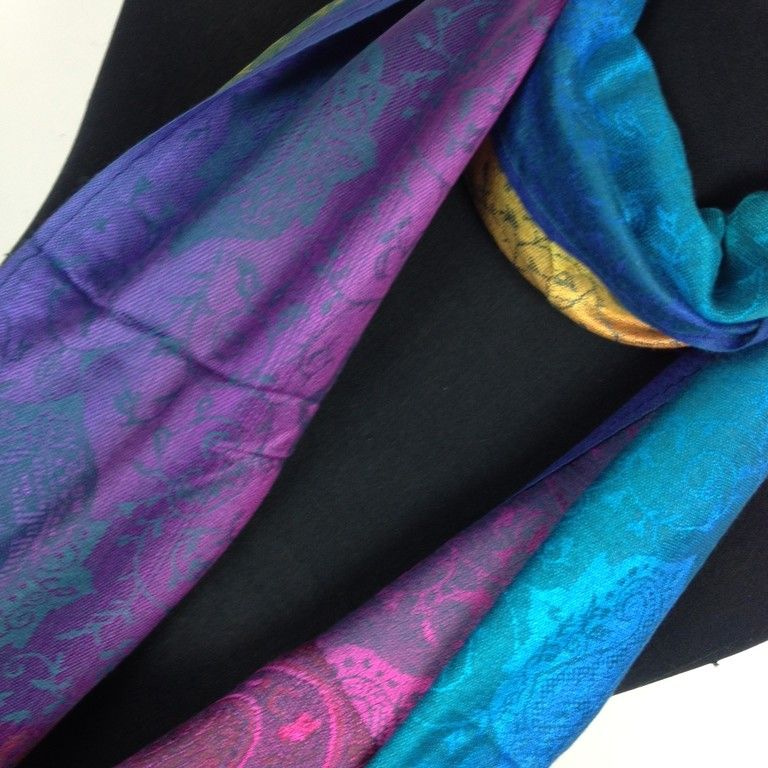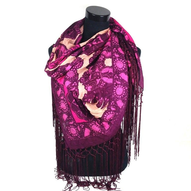 S_711890A - LUXURY SCARF WITH FRILLS BORDEAUX / PURPLE (1st)