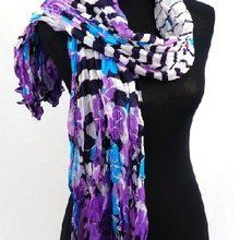 S_702678 - Art.nr: 702678 - SCARF PURPLE / BLUE FLOWER WITH STRIPE (2pc)