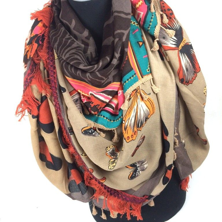 S_2264503 - LUXE SCARF BROWN / RED WITH BUTTERFLIES (1st)