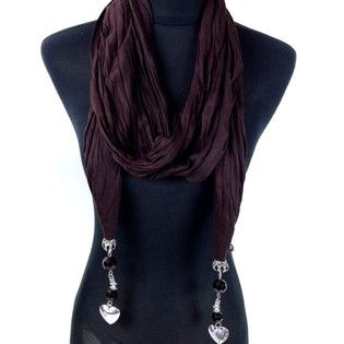 S_900020E - BEAUTIFUL SCARF WITH HEARTS BROWN (1st)