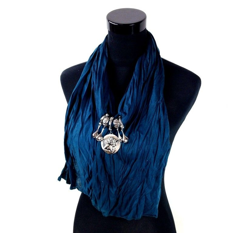 S_900020A - BEAUTIFUL SCARF WITH AN ANGEL PETROL (1st)