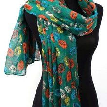 S_709784 - Art.nr: 709 784 - GREEN SCARF WITH COLORED LEAVES (2pc)
