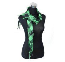 s_766500 - SCARF GREEN / BLACK blocked with FRILLS (2st)