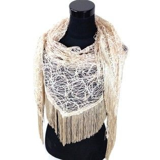 S_900005C - LUXURY TRIANGLE SCARF WITH FRILLS BEIGE (1st)