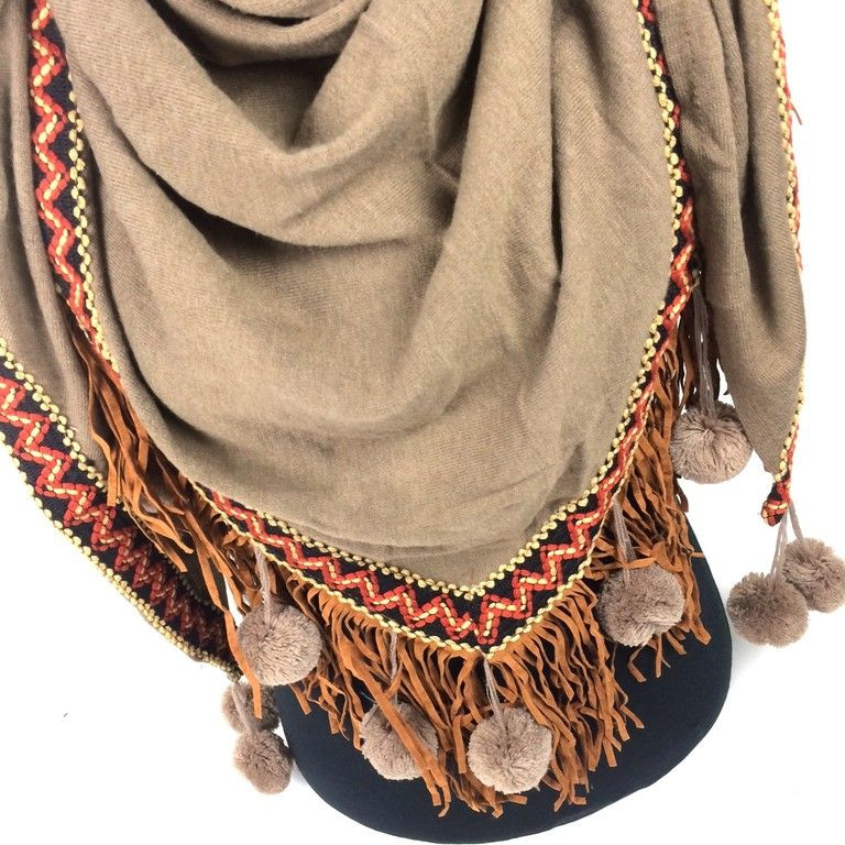 S_2208505 - LUXE TRIANGLE SCARF BROWN WITH FRILLS (1st)