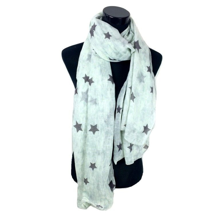 S_2340402 - SCARF WITH STARS MINT / GREY (1st)