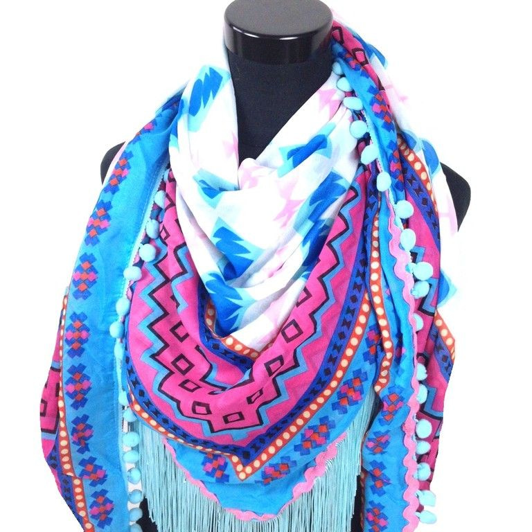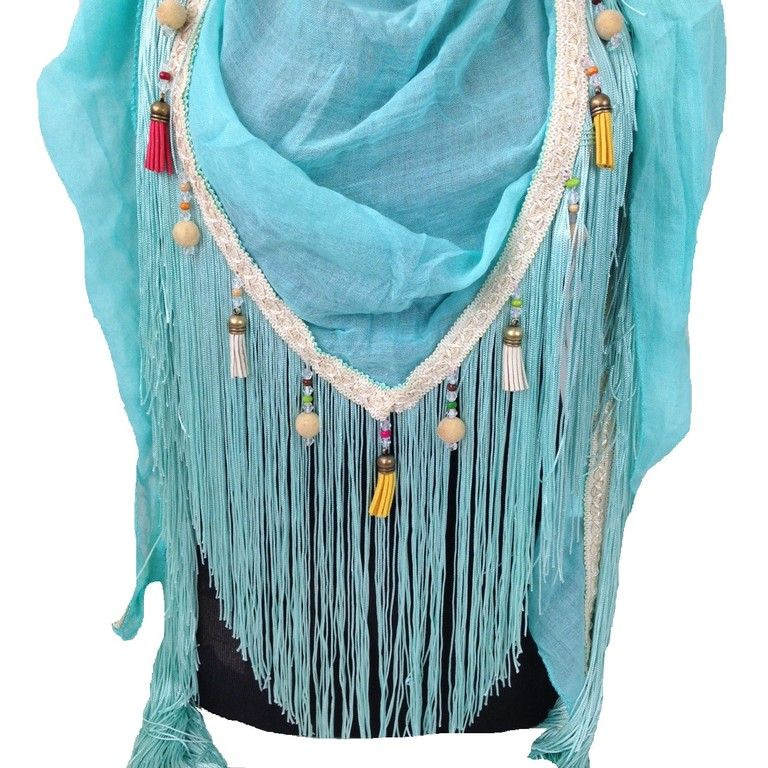 S_900015B - TRIANGLE SCARF WITH FRILLS AQUA (1st)