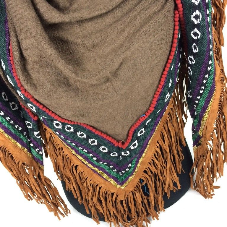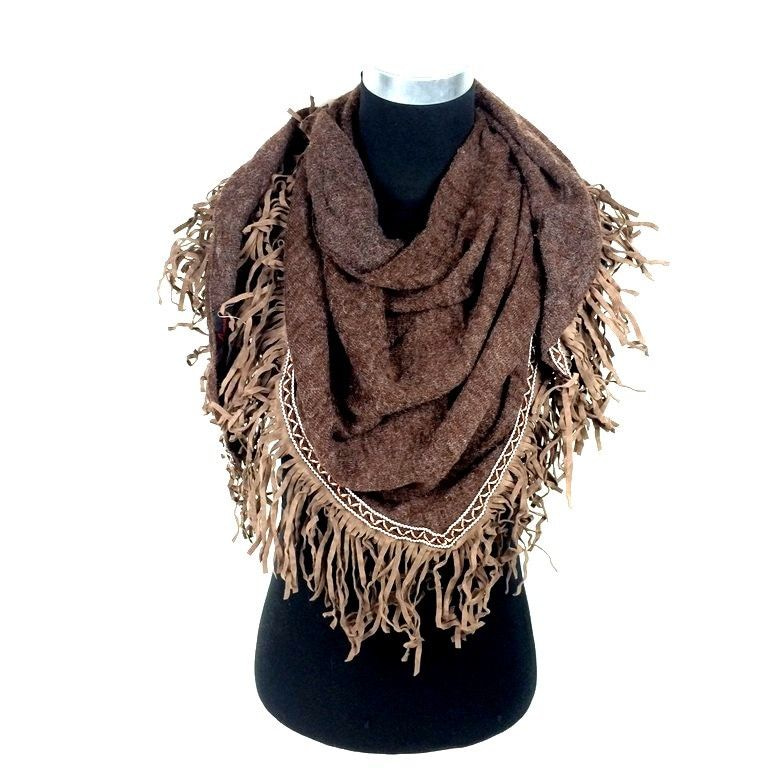 S_811436 - LUXE TRIANGLE SCARF BROWN WITH FRILLS (1st)
