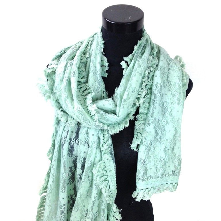 S_900014B - LUXURY LACE SCARF MINT with tassels (1st)