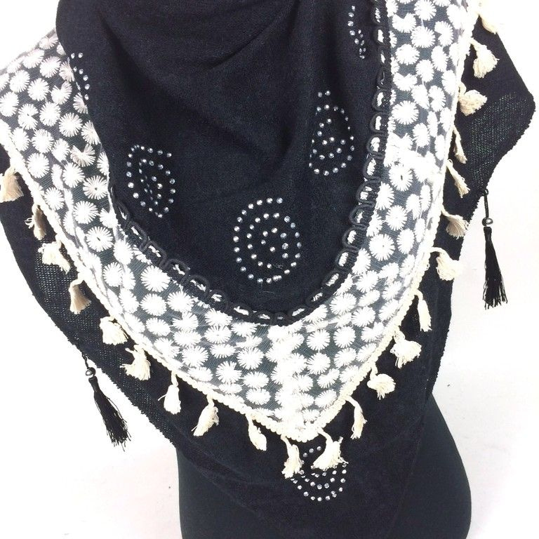 S_811421 - LUXURY BLACK TRIANGLE SCARF WITH FRILLS (1st)