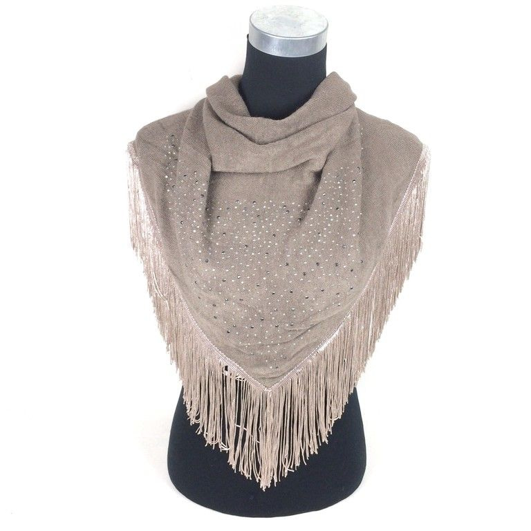 S_2207505 - BEAUTIFUL TRIANGLE SCARF BROWN WITH FRILLS (1st)
