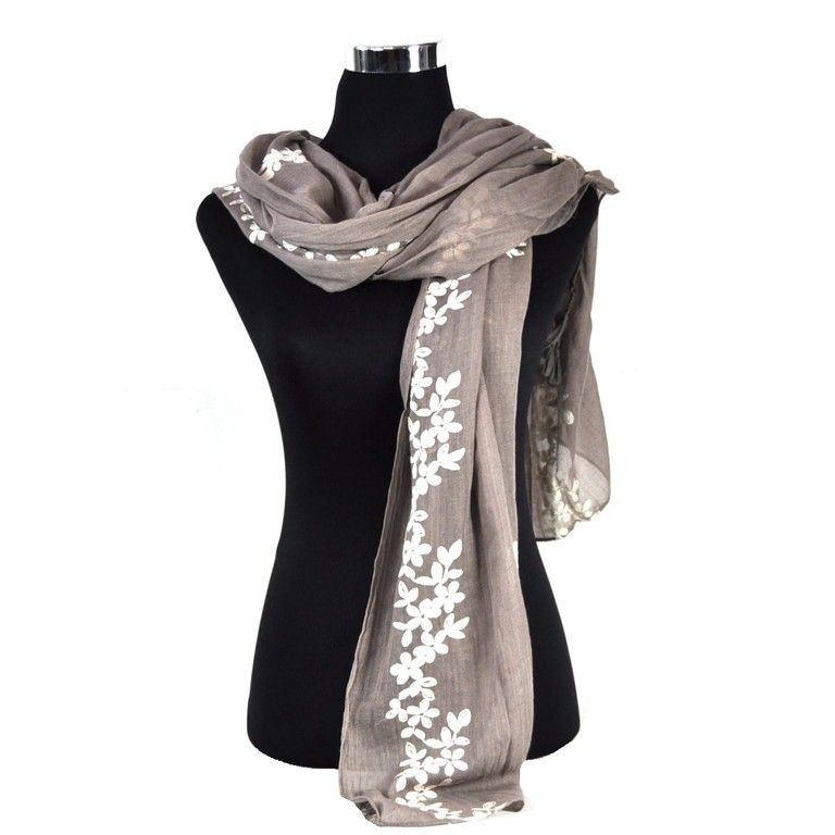 S_2530503 - TAUPE SCARF MODEL BEAUTIFUL FLOWERS (1st)