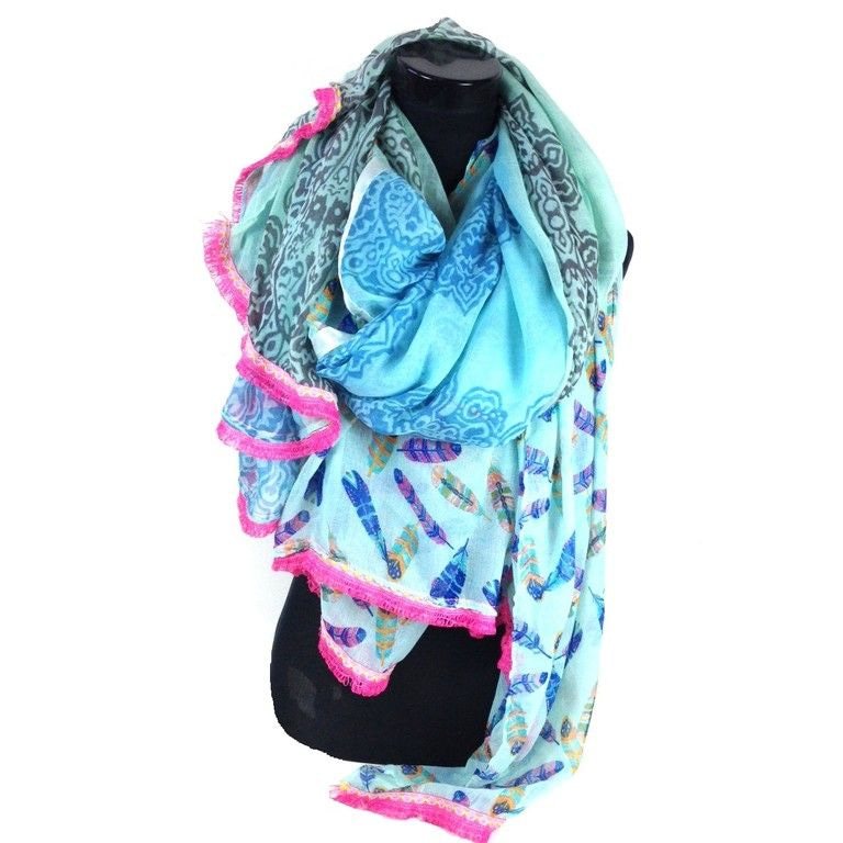 S_2457200 - LUXURY SCARF WITH BULLETS / FRILLS TURQUOISE (1st)