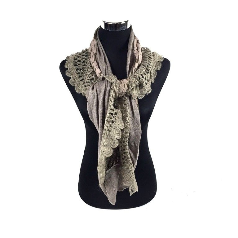 S_2462007B - LUXURY TAUPE SCARF WITH SALMON FRILLS (1st)