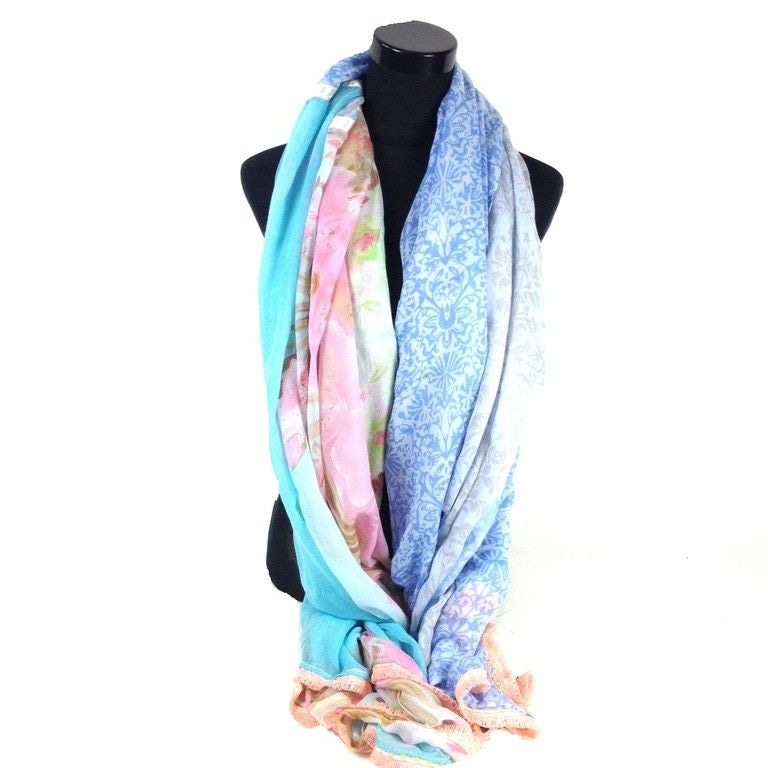 S_900011C - SCARF WITH ROSES AND FLOWERS PRINT LACE MINT BLUE (1st)