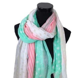 S_900019B - BEAUTIFUL SCARF WITH STARS / STRIPES AND DOTS MINT GREEN (1st)