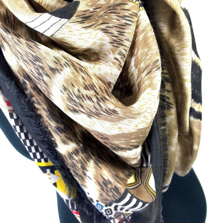 S_2355005 - CREAM COLOURED SCARF WITH ZEBRA AND LEOPARD PRINT (1st)