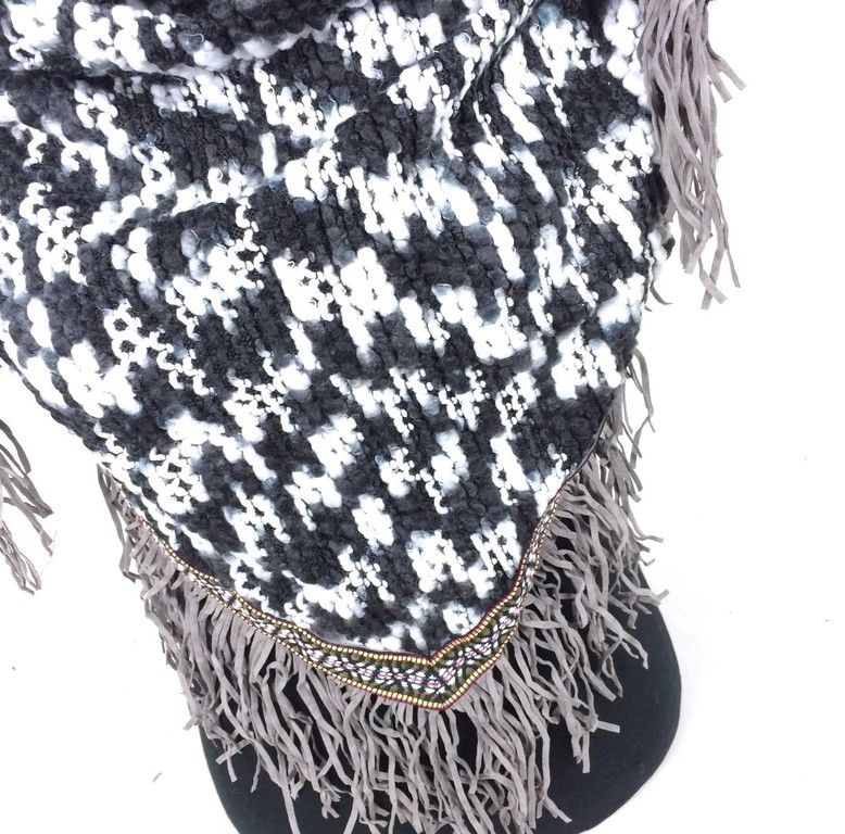 S_1877003 - BEAUTIFUL TRIANGLE SCARF BLACK / WHITE WITH FRILLS (1st)