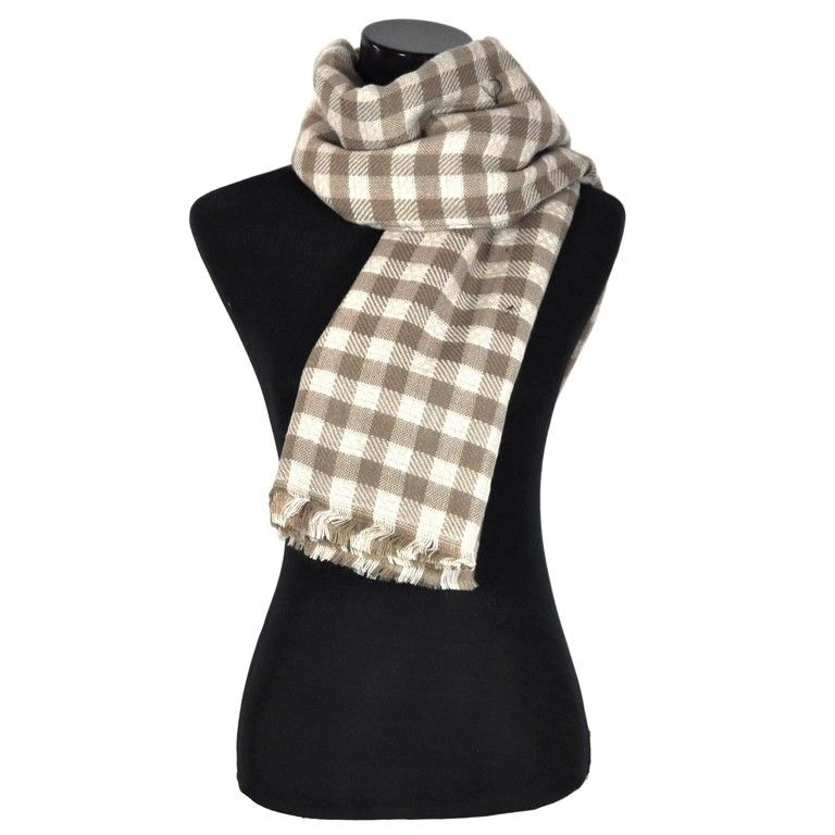 S_716224C - BEIGE / TAUPE CHECKED SHAWL (1st).