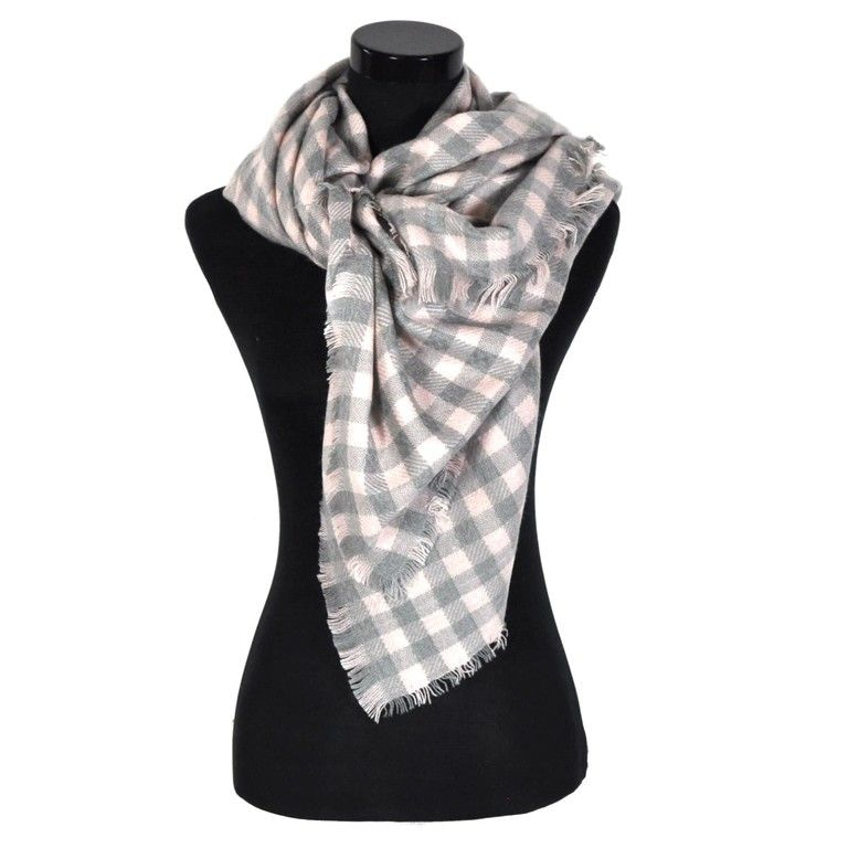 S_716224A - PINK / GREY CHECKED SHAWL (1st).