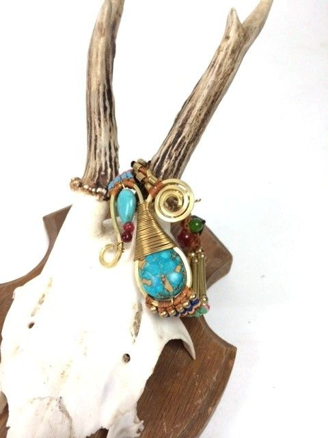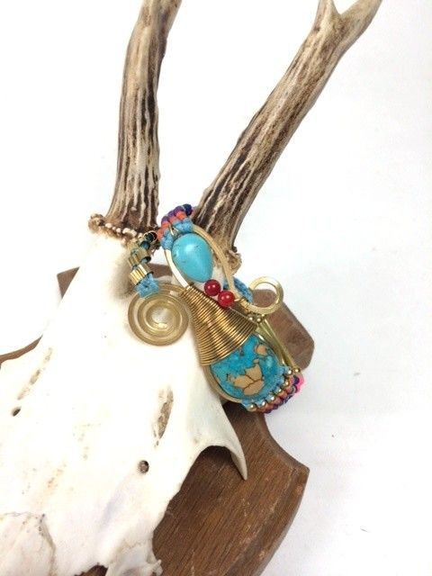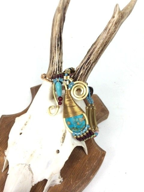 S_600201E - HANDMADE BRACELET BLUE STONE IBIZA ORIGINALS COGNAC (1st)