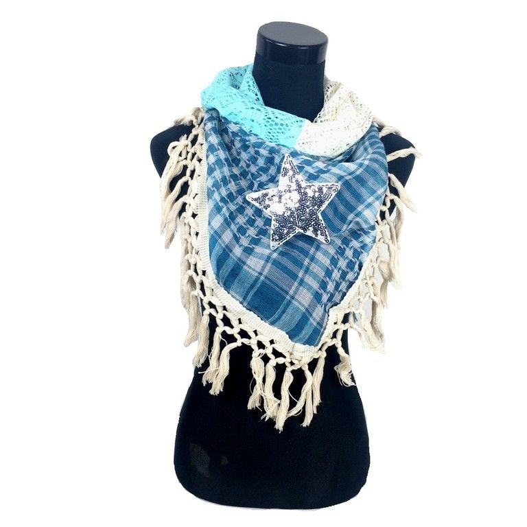 S_2451200 - LUXURY TRIANGLE SCARF BLUE STAR WITH BULLETS (1st)
