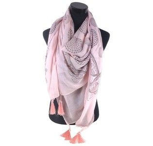 S_2449303 - SCARF WITH PRINT tassels PINK (1st)