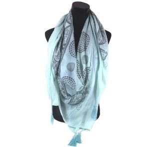 S_2449402 - SCARF WITH PRINT tassels MINT BLUE (1st)