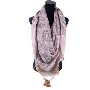 S_2449005 - SCARF WITH PRINT AND LIGHT TAUPE tassels (1st)