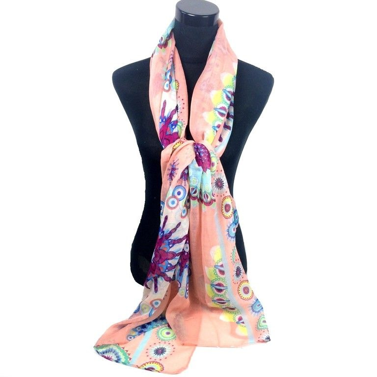 S_2456005 - BEAUTIFUL SCARF WITH PRINT laps / SALMON FLOWERS (1st)