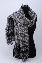 S_900003C - BEAUTIFUL SCARF WITH PRINT WOVEN GREY (1st)