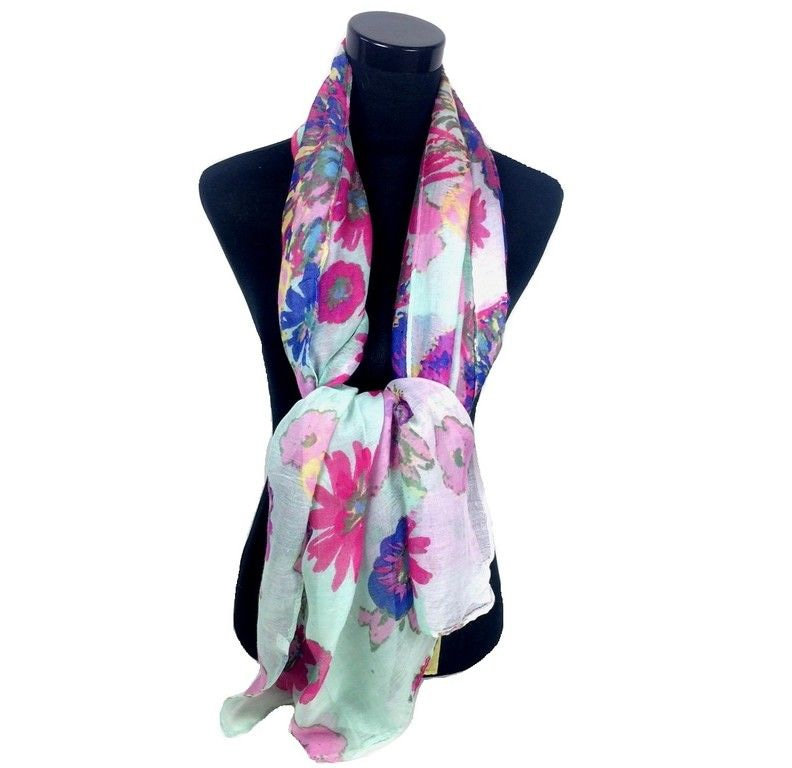 S_2455402 - BEAUTIFUL SCARF WITH PRINT FLOWERS COLORFULL / MINT GREEN (1st)