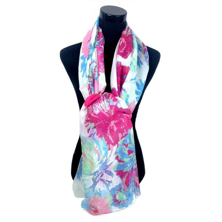 S_2455000 - BEAUTIFUL SCARF WITH PRINT laps / FLOWERS PINK / WHITE (1st)
