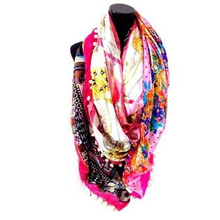 S_2149007CI - DELUXE 2-SIDED TRIANGLE SCARF PINK / FLOWERS SCOOPS (1st)