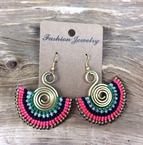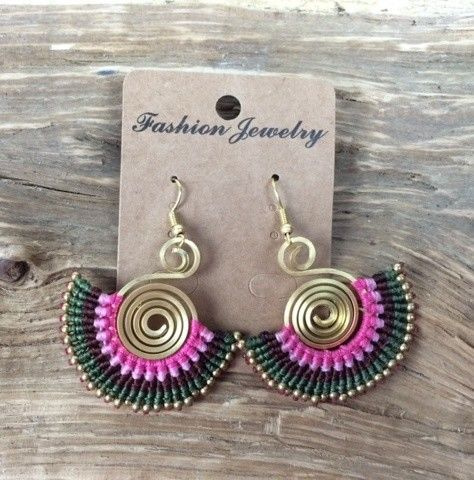 S_600212Q - HANDMADE IBIZA ORIGINALS EARRINGS PINK / GREEN (1st)