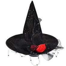 54751 - LUXURY WITCH HAT WITH FRILLS AND RED FLOWER (6 pcs.)