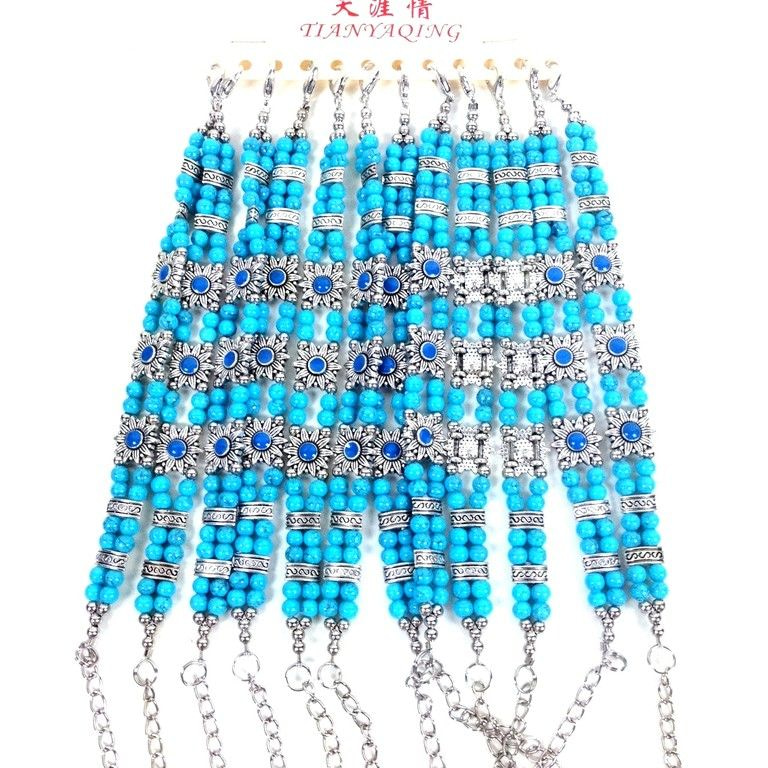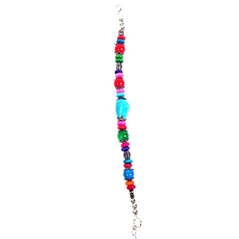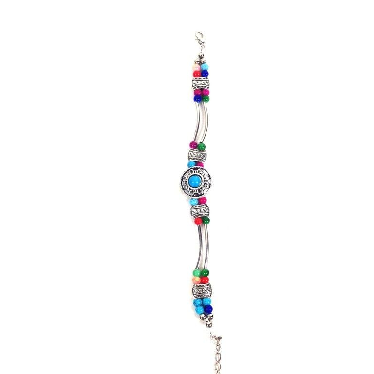 S_600621G - BRACELET SILVER LOOK / MULTI COLOR WITH TURQUOISE STONE (12st)