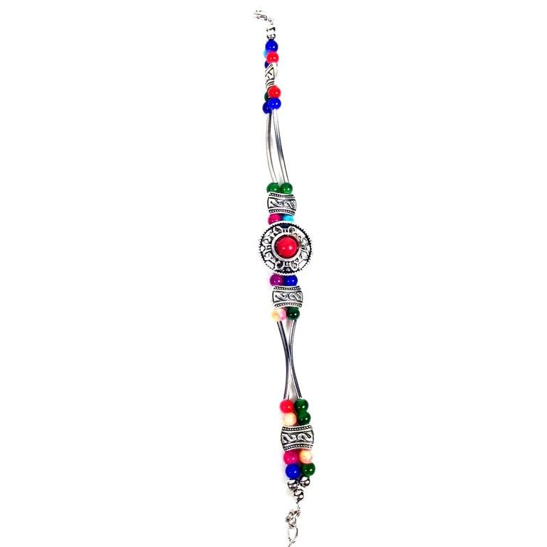 S_600621B - BRACELET SILVER LOOK / MULTI COLOR WITH RED STONE (12st)