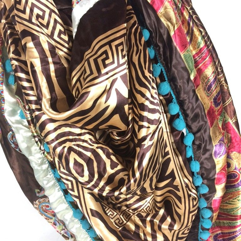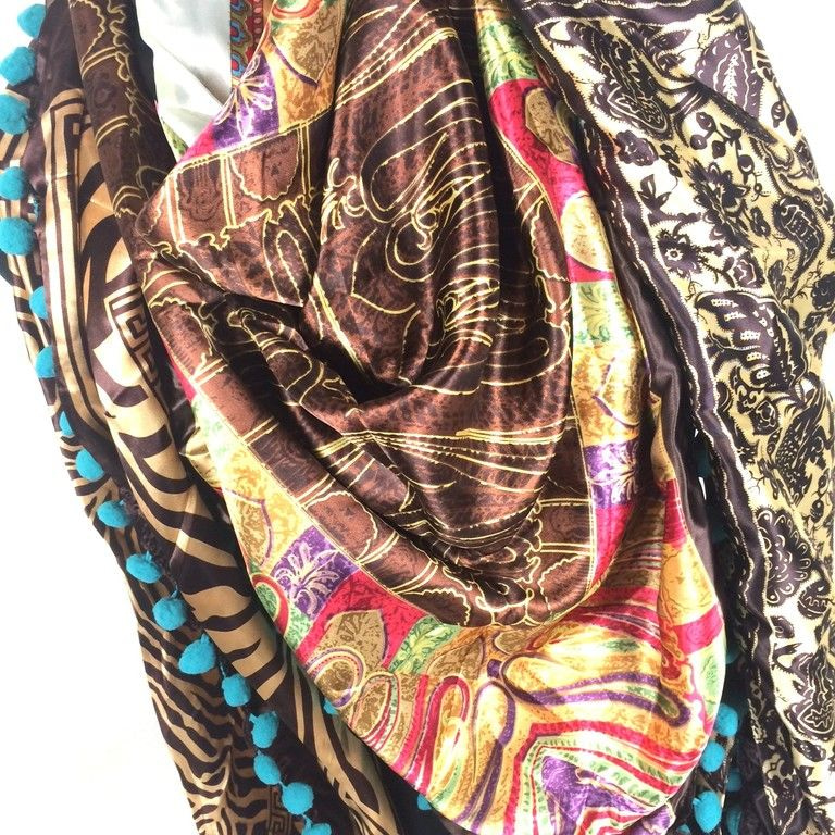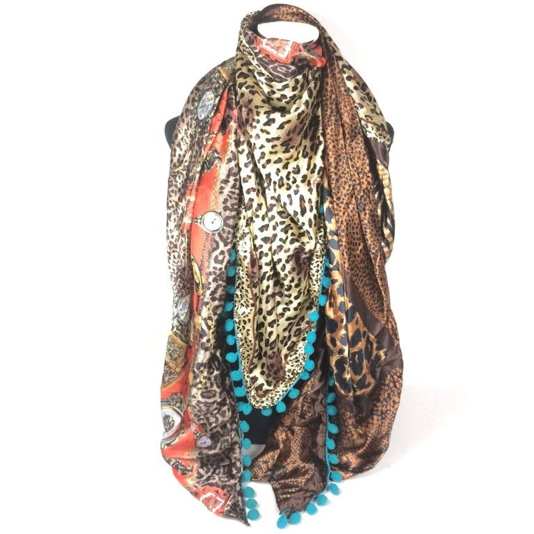 S_2149007BI - LUXURY 2-SIDED TRIANGLE SCARF BROWN / ORANGE TURQUOISE BULLETS (1st)