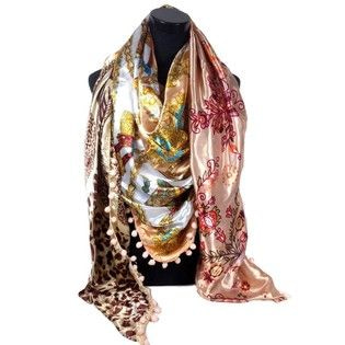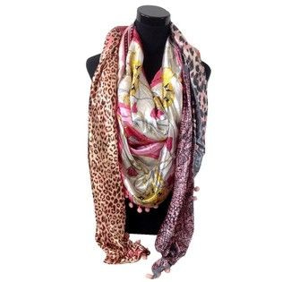 S_ 2149007W - LUXE TRIANGLE SCARF 2-SIDED PINK / PANTHER / CLOCK / MULTI (1st)