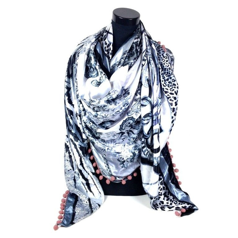 S_ 2149007Y - LUXE TRIANGLE SCARF 2-SIDED PINK / PANTHER / CLOCK / MULTI (1st)