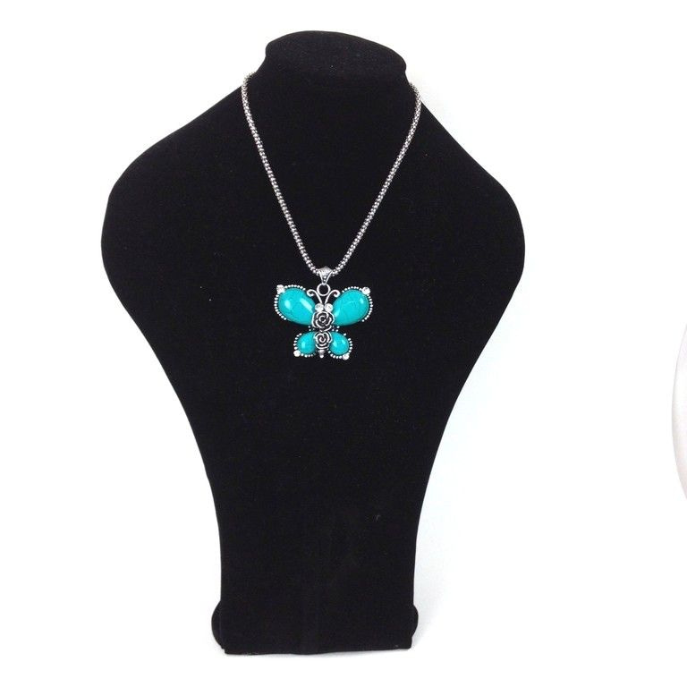 S_600430B - BUTTERFLY NECKLACE WITH FLOWER TURQUOISE (1st)