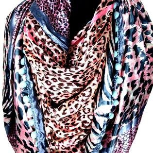 S_ 2149007W - LUXE TRIANGLE SCARF 2-SIDED PINK / PANTHER / CLOCK / MULTI (1st)