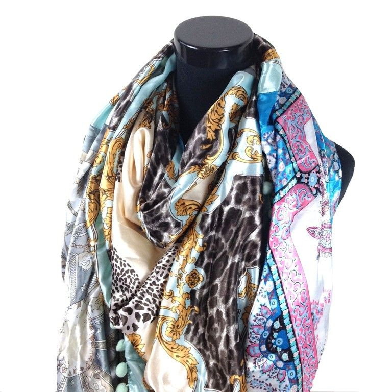 S_2149007FU - DELUXE 2-SIDED TRIANGLE SCARF PANTHER / BLUE MINT SCOOPS (1st)